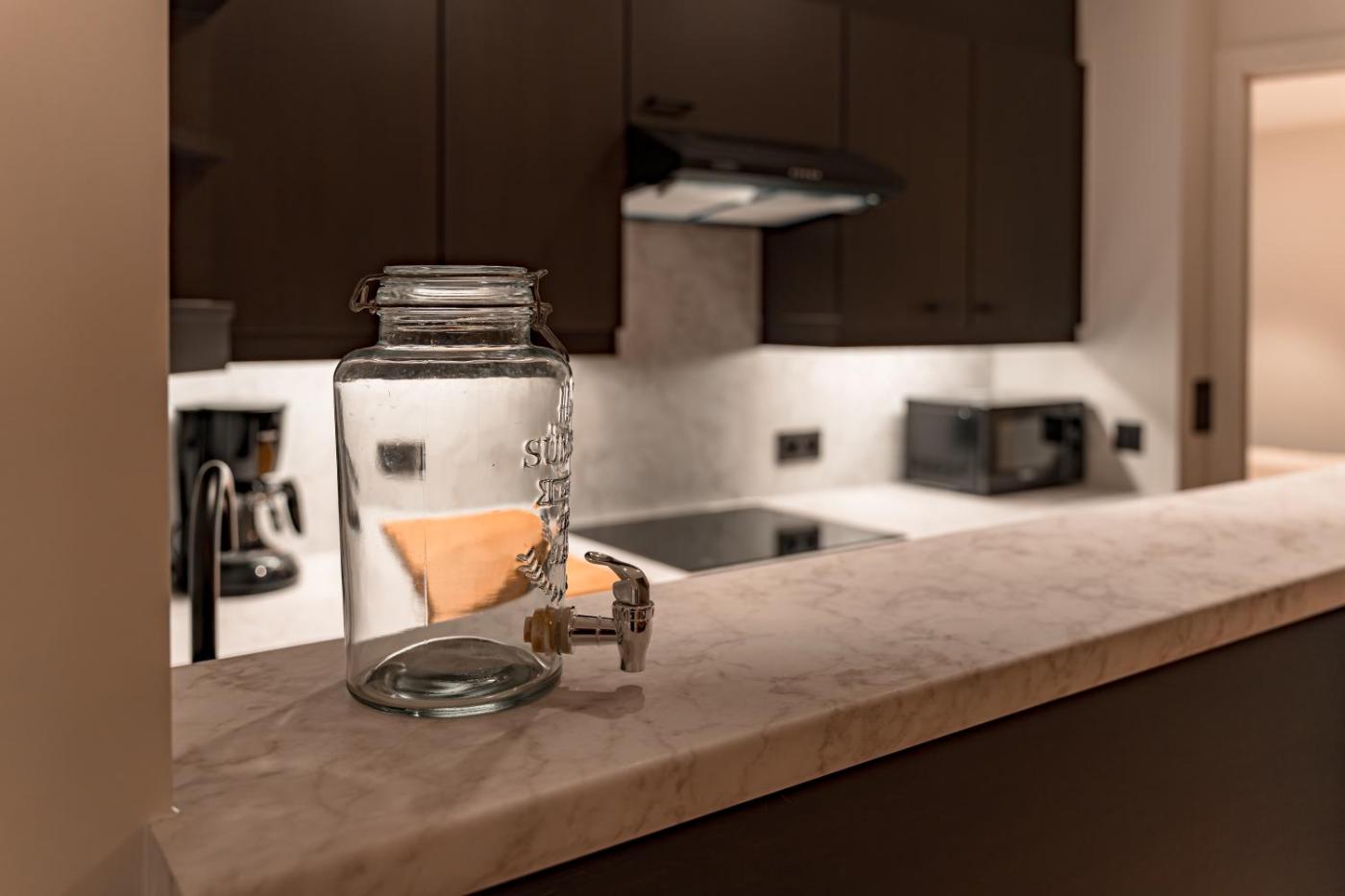 One-Bedroom Apartment. This spacious apartment consists of 1 living room, 1 separate bedroom and 1 bathroom with a shower and a hairdryer. In the well-fitted kitchen, guests will find a stovetop, a refrigerator, kitchenware and an oven. Featuring a balcony, this apartment also provides a tea and coffee maker, heating and a flat-screen TV. The unit offers 3 beds.